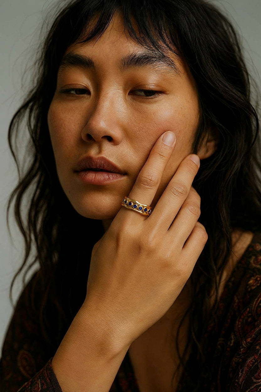 "I’ve been wearing the Sibyl Ring every day for two months now — the silver hasn’t dulled, and it just feels solid. The blue stones catch light in such a subtle way, I keep getting asked if it’s vintage."